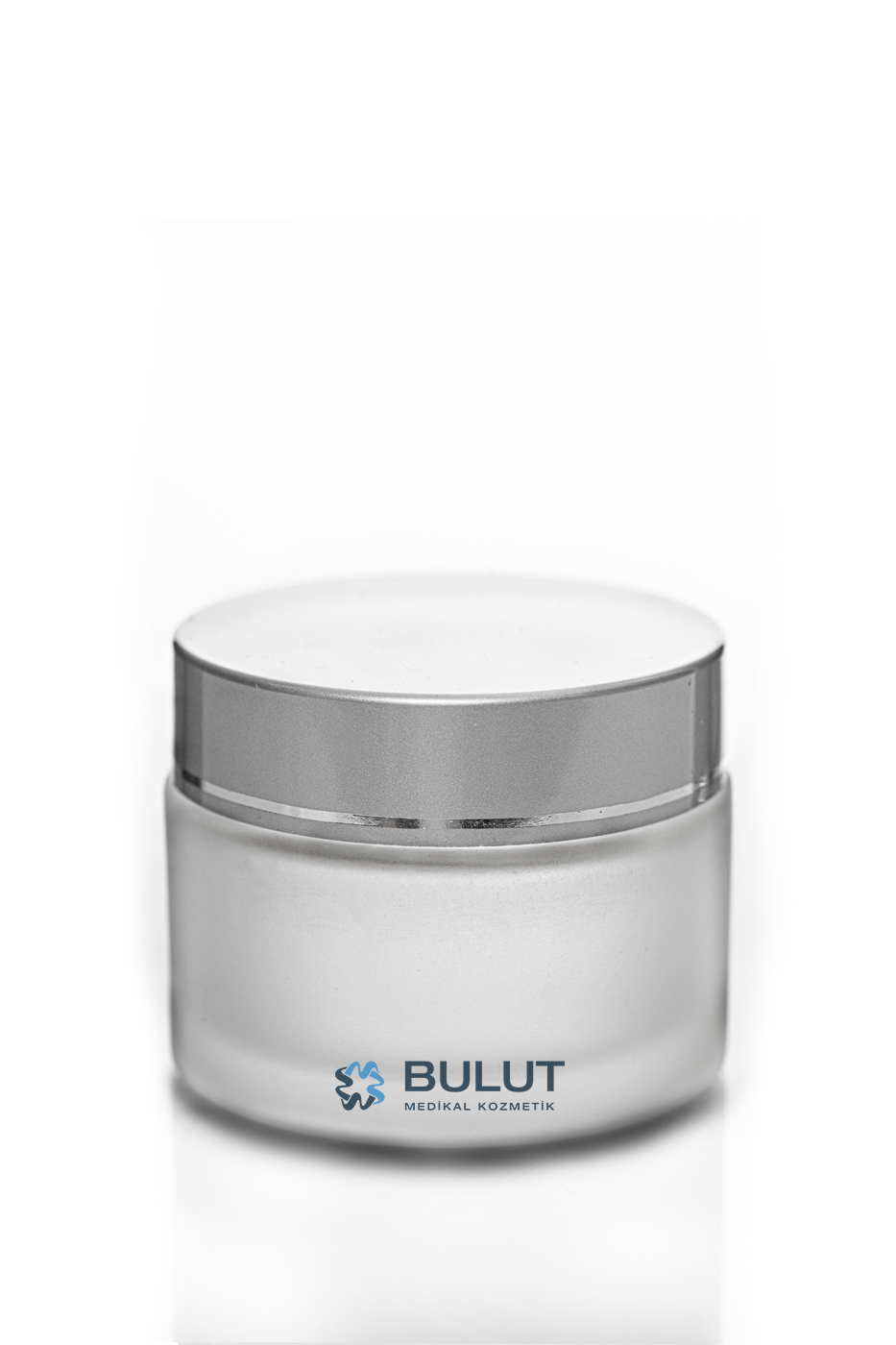 50 ML Buzlu Cam Krem Kavanozu Gri Kapaklı Tıpalı